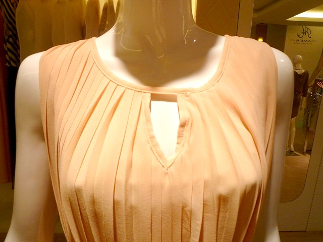 Sequin Collar, Pleats Fabric, Ruffle Sleeves and Mesh Neckline Design.